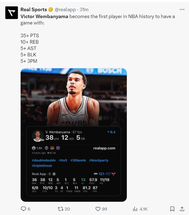 一战创6纪录4点历史第一!文班已颠覆常规认知 马刺未来一片光明