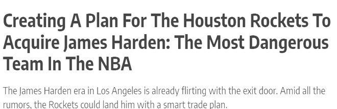 而根据Fansided快船板块的作者Iliyan Lakhani爆料,根据他知道的情况,哈登已是身体在快船、内心已经飞向休斯顿!而火箭在范弗里特赛季报销后,在控卫上也存在巨大的缺口,哈登很符合他们的需求。在哈登潜在下家的讨论中,火箭成为最大的潜在下家。若哈登能重返休斯顿,并与凯文·杜兰特再度联手,火箭队将立刻组建起一对极具威慑力的进攻组合,有能力挑战在西部独领风骚的雷霆。美媒露天看台,提出一笔潜在的7换1交易方案,让火箭在不损失年轻球员的基础上,得到哈登!