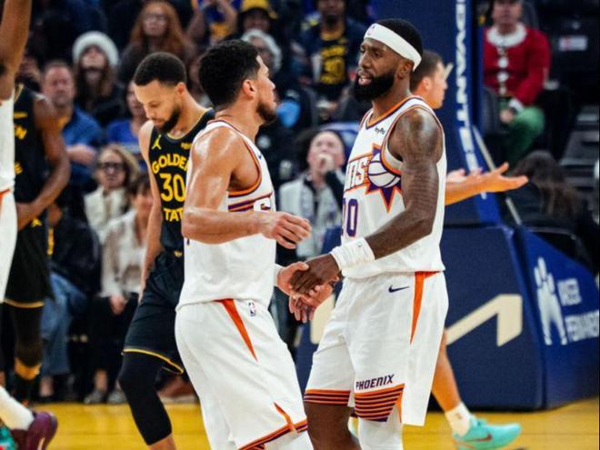 第三节比赛勇士打出一波5-1,布克罚球2中1后巴特勒扣篮得分,狄龙罚球2中1后波斯特补扣得分,布克投篮得分后穆迪命中三分,狄龙命中三分后勇士打出一波8-2,布耶打成2+1后吉莱斯皮罚球2中2,理查德命中三分后邓恩也命中三分,末尾阶段勇士打出一波6-1,三节比赛结束勇士领先6分。第四节比赛吉莱斯皮命中三分,随后勇士打出一波10-2,布克上篮得分后狄龙罚球2中2,库里中投命中后吉莱斯皮投篮也命中,布克中投命中后库里上篮得分,布克突破得分后波斯特扣篮得分,布克打成2+1后库里命中三分,太阳一波8-3后库里罚球2中2,吉莱斯皮命中三分后库里上篮得分,最终勇士险胜太阳。